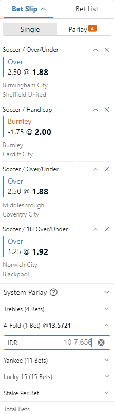 Prediksi Mix Parlay 4 Tim