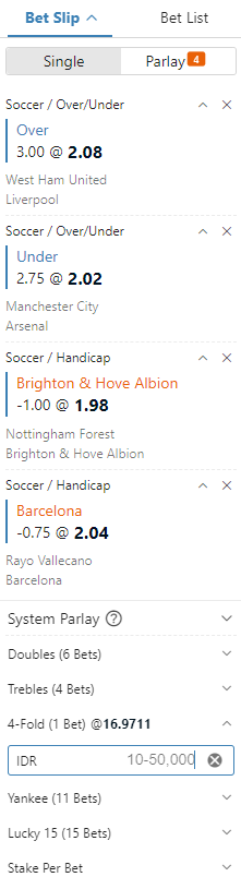 Oleh sebab itu jenis game ini disebut Mix Parlay atau taruhan berganda. Karena, jika bisa menebak semua taruhan dengan benar maka hadiah yang di terima seorang pemain juga akan berkali-kali lipat. Hal ini disebabkan semua odds yang terdapat di taruhan yang di pilih akan di kalikan semuanya, sehingga nilainya akan besar.
