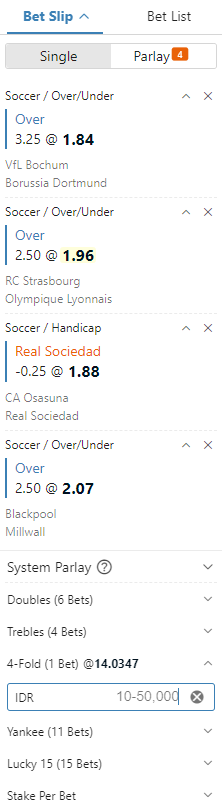 Oleh sebab itu jenis game ini disebut Mix Parlay atau taruhan berganda. Karena, jika bisa menebak semua taruhan dengan benar maka hadiah yang di terima seorang pemain juga akan berkali-kali lipat. Hal ini disebabkan semua odds yang terdapat di taruhan yang di pilih akan di kalikan semuanya, sehingga nilainya akan besar.