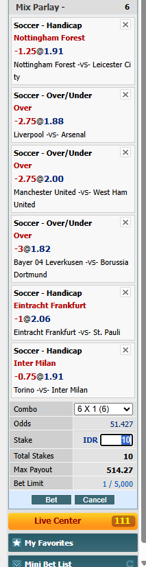 Prediksi Mix Parlay 6 Tim