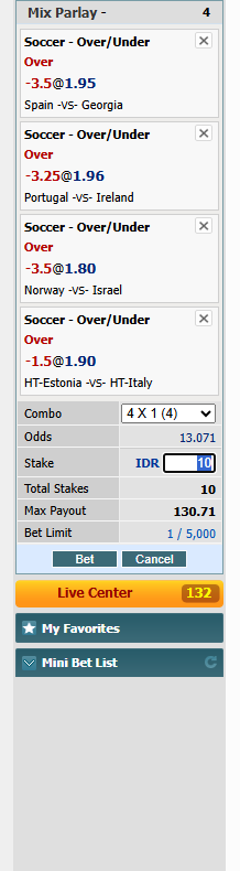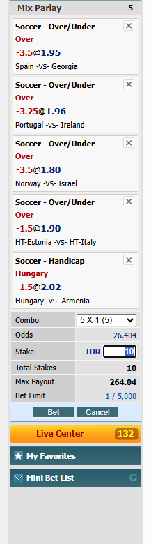Oleh sebab itu jenis game ini disebut Mix Parlay atau taruhan berganda. Karena, jika bisa menebak semua taruhan dengan benar maka hadiah yang di terima seorang pemain juga akan berkali-kali lipat. Hal ini disebabkan semua odds yang terdapat di taruhan yang di pilih akan di kalikan semuanya, sehingga nilainya akan besar.