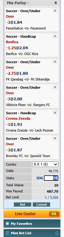 Oleh sebab itu jenis game ini disebut Mix Parlay atau taruhan berganda. Karena, jika bisa menebak semua taruhan dengan benar maka hadiah yang di terima seorang pemain juga akan berkali-kali lipat. Hal ini disebabkan semua odds yang terdapat di taruhan yang di pilih akan di kalikan semuanya, sehingga nilainya akan besar.