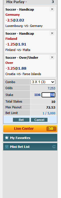 Oleh sebab itu jenis game ini disebut Mix Parlay atau taruhan berganda. Karena, jika bisa menebak semua taruhan dengan benar maka hadiah yang di terima seorang pemain juga akan berkali-kali lipat. Hal ini disebabkan semua odds yang terdapat di taruhan yang di pilih akan di kalikan semuanya, sehingga nilainya akan besar.
