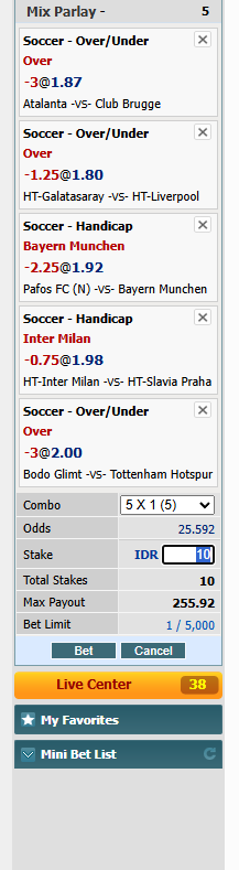 Oleh sebab itu jenis game ini disebut Mix Parlay atau taruhan berganda. Karena, jika bisa menebak semua taruhan dengan benar maka hadiah yang di terima seorang pemain juga akan berkali-kali lipat. Hal ini disebabkan semua odds yang terdapat di taruhan yang di pilih akan di kalikan semuanya, sehingga nilainya akan besar.