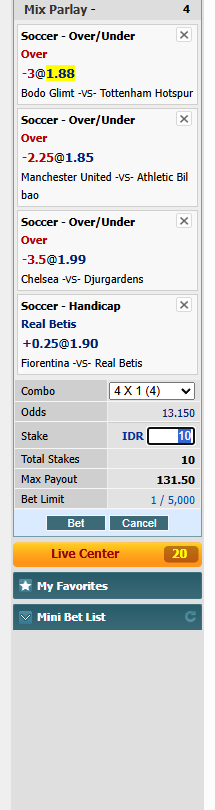 Prediksi Mix Parlay 4 Tim