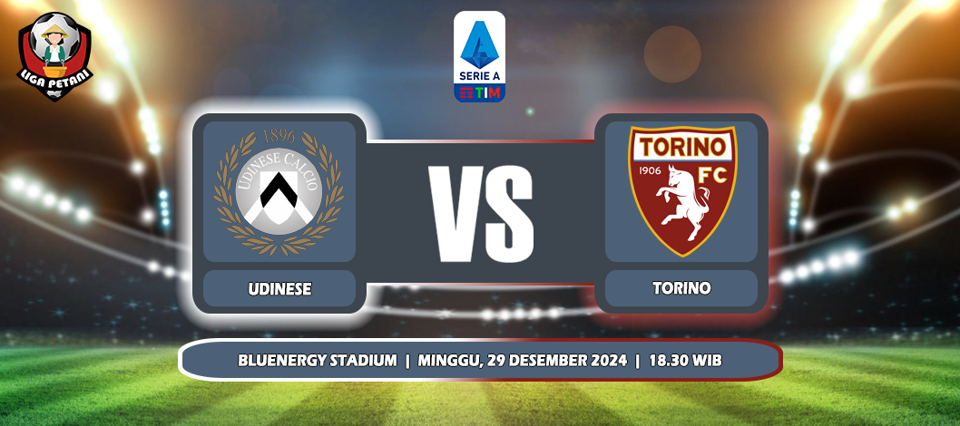 Ligapetani.com – Prediksi Udinese Vs Torino yang akan berlangsung di Bluenergy Stadium dalam laga pekan ke-18 Serie A 2024/25, Minggu (29/12/2024) pukul 18.30 WIB.