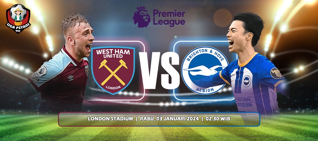 Ligapetani.comPrediksi West Ham United Vs Brighton & Hove Albion. West Ham akan menghadapi Brighton dalam laga pekan ke-20 Liga Premier Inggris 2023/24 yang akan berlangsung di London Stadium, Rabu (03/01/2024) pukul 02.30 WIB.
